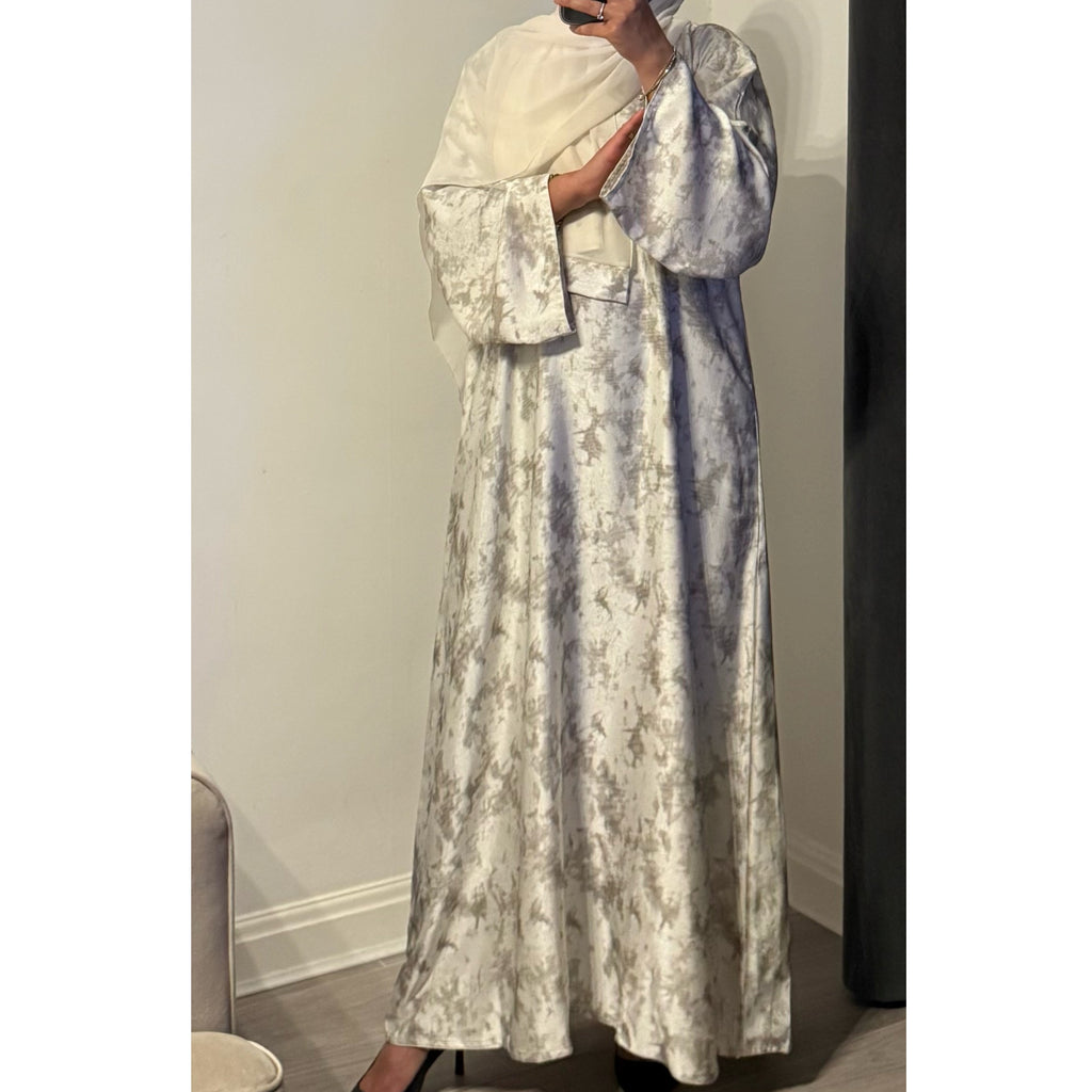 Missed out on our Yara Collection? You’ll fall in love with this one. Designed in a luxurious material with a beautifully striking print, this closed abaya includes a convenient pocket and features sleeve buttons to prevent slipping. It comes complete with a matching hijab and belt. Limited edition—once it’s gone, it’s gone.
