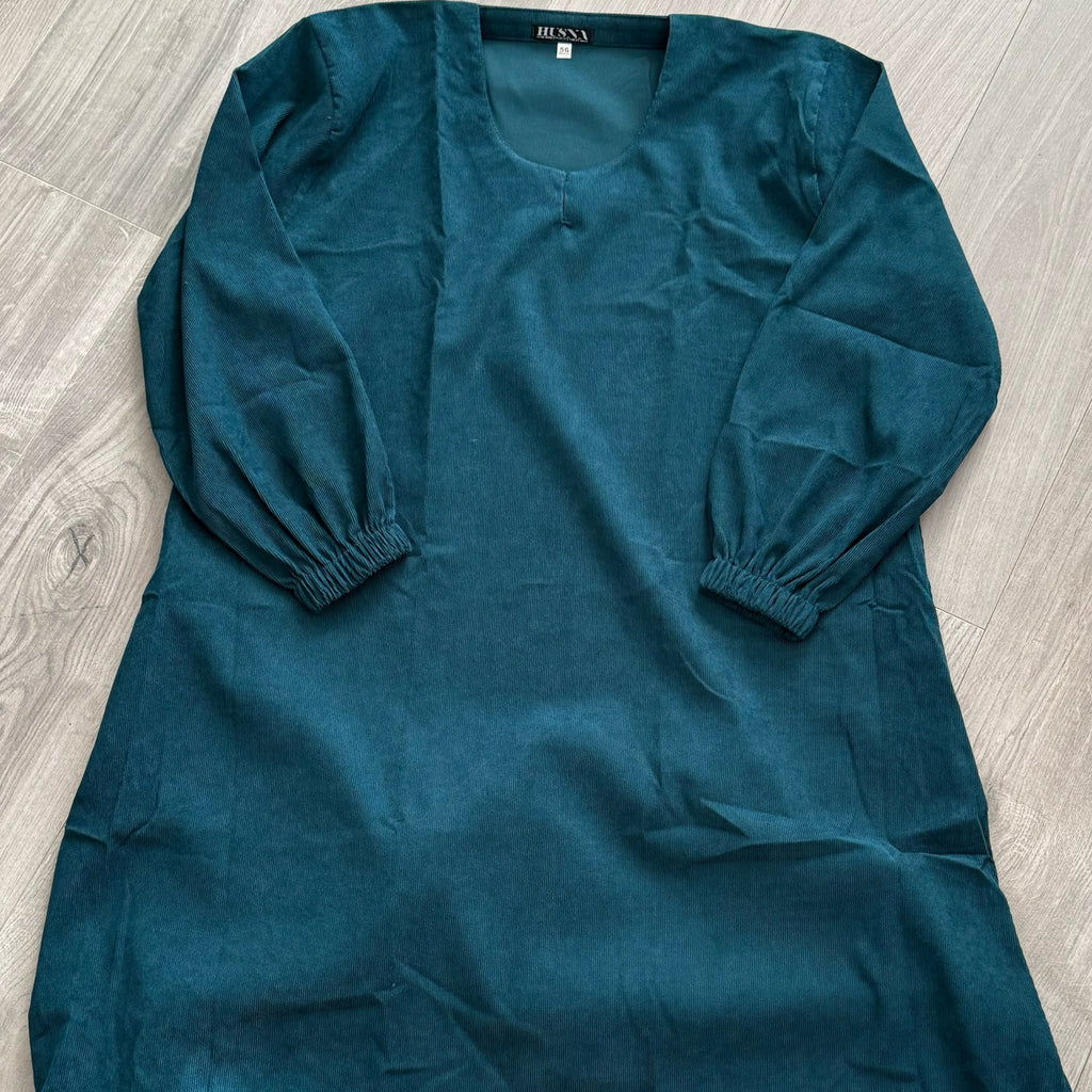 WINTER RIBBED ABAYA WITH TWO POCKETS TEAL BLUE