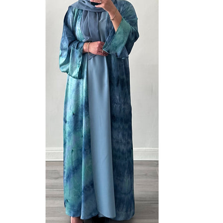 4 PIECE MARBLE PRINT ABAYA BLUE