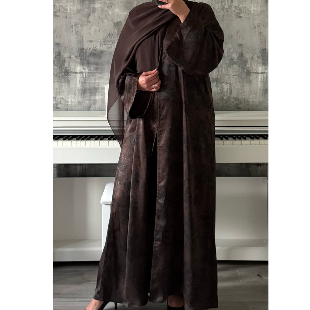 ANEESA FLOWER OPEN ABAYA BROWN