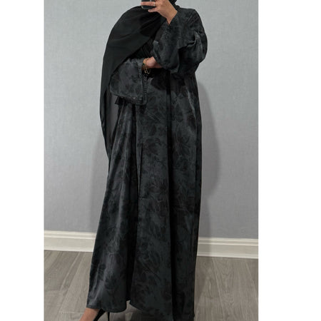 ANEESA FLOWER OPEN ABAYA GREY