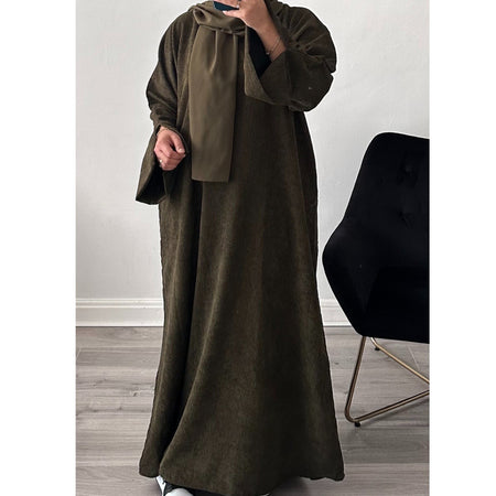 CORDUROY CLOSED 2 POCKET ABAYA OLIVE