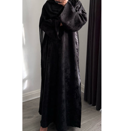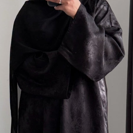 DEENA 2.0 JACQUARD OPEN ABAYA WITH BUTTONS BLACK