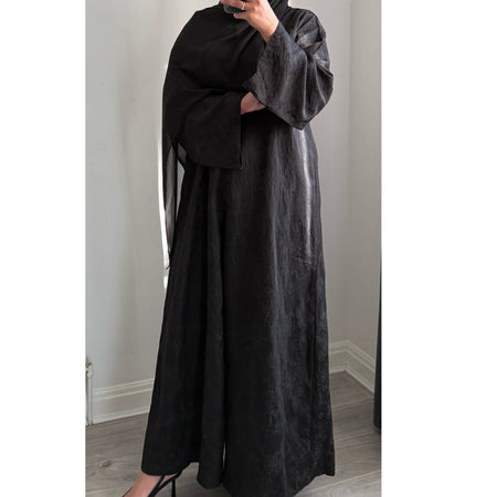 DEENA JACQUARD OPEN ABAYA WITH BUTTONS BLACK
