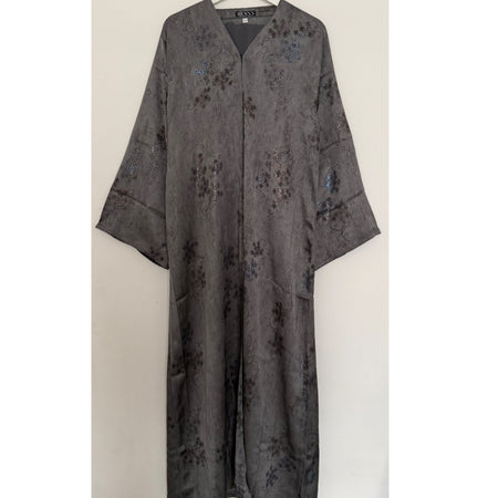 LIMITED EDITION HIBA OPEN ABAYA WITH BUTTONS - DARK GREY