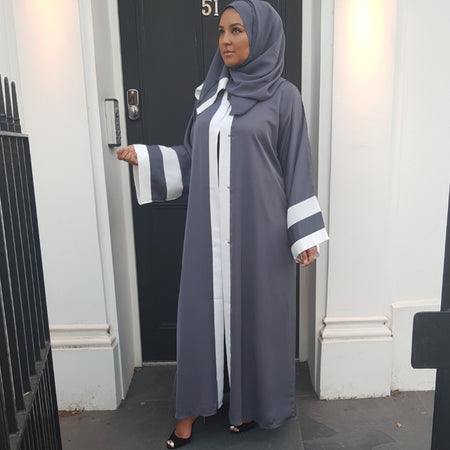 OPEN ABAYA GREY/WHITE