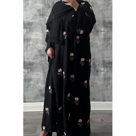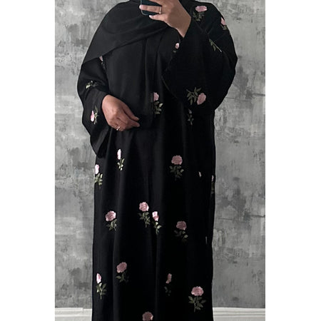 PINK ROSES OPEN ABAYA WOTH BUTTON