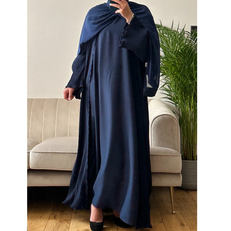 PLEATED ABAYA SET NAVY