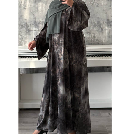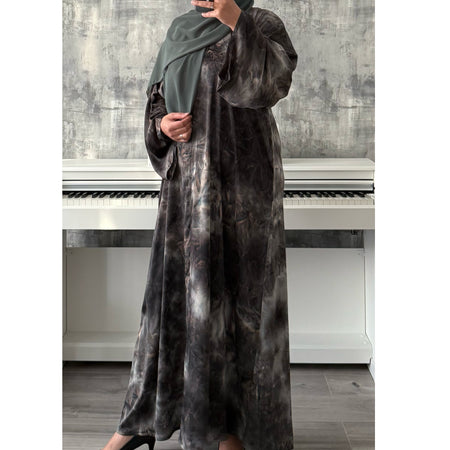 TIE DYE MARBLE OPEN ABAYA WITH BUTTONS - GREEN
